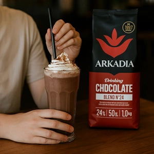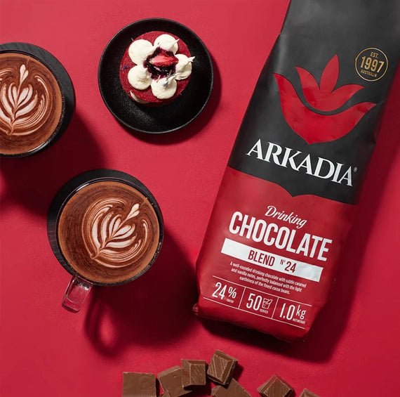 Arkadia Drinking Chocolate 24% offers a classic, mellow cocoa flavour that’s smooth, versatile, and perfect for cafés or home kitchens. Ideal for hot chocolates, mochas, and iced drinks.