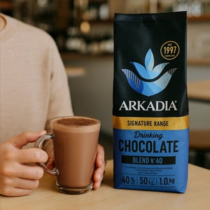 Arkadia Drinking Chocolate 40% is a barista-grade blend made with premium cocoa. Deep, smooth, and slightly bittersweet, it’s the go-to choice for cafés and home brewers chasing luxurious flavour.